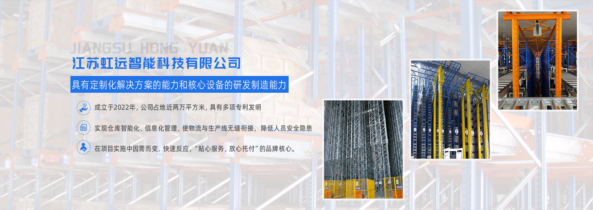 江苏虹远智能科技有限公司,成立于2022年,网罗了一批本行业高科技人才,具有多项专利发明。公司占地近两万平方米, 旗下有软件研发、堆垛机生产制造、输送设备制造、提升机制造、3D车研发、货架生产等产业链一站式服务,更好的解决客户的需求,我们一贯的理念——用科技服务客户,用品质赢得客户。 一直以来虹远智能的服务遍及新能源、医药、家居、冷链、食品、汽车、机械、造纸、能源、化工、 服装等多个行业领域,100%完成了各类工程案例。作为专业的物流系统制造商,虹远智能定制化解决方案的能力和核心设备的研发制造能力是我们的强大优势。此外,我们在项目实施中因需而变、快速反应,以贴心周到的售后服务,让每一位客户真...